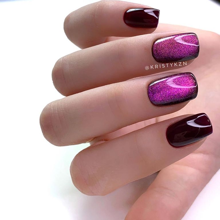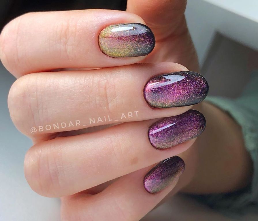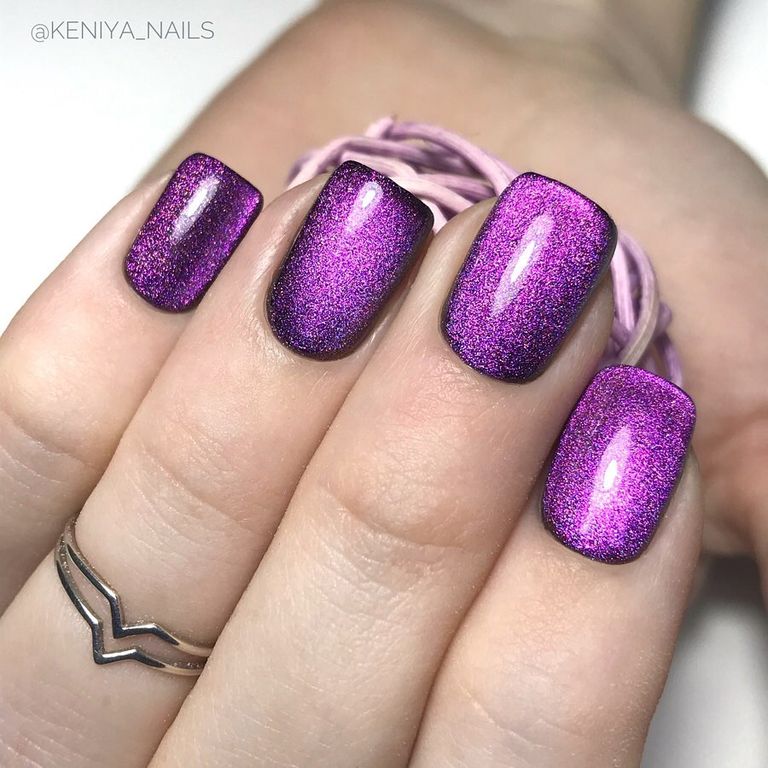 При помощи специального магнита для магнитного гель-лака можно создавать завораживающие узоры с очень красивыми бликами. Наилучший эффект достигается при нанесении на темный (чёрный) фон.