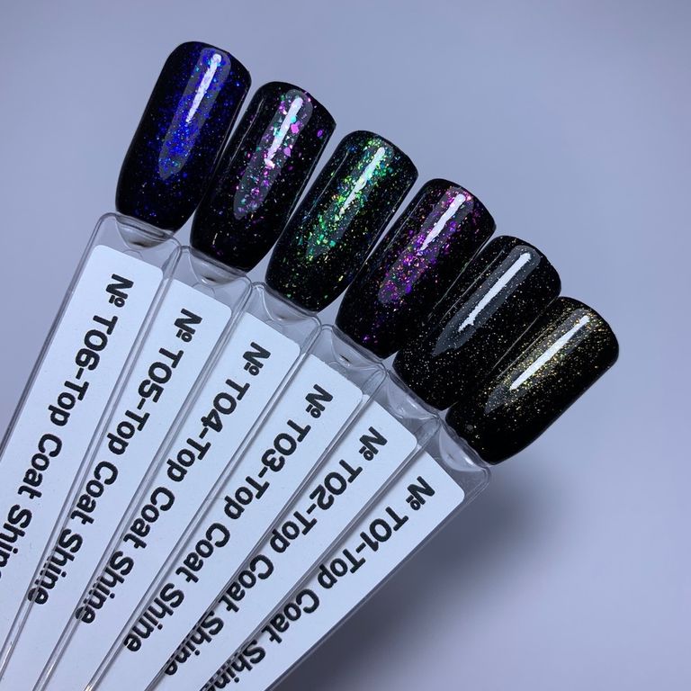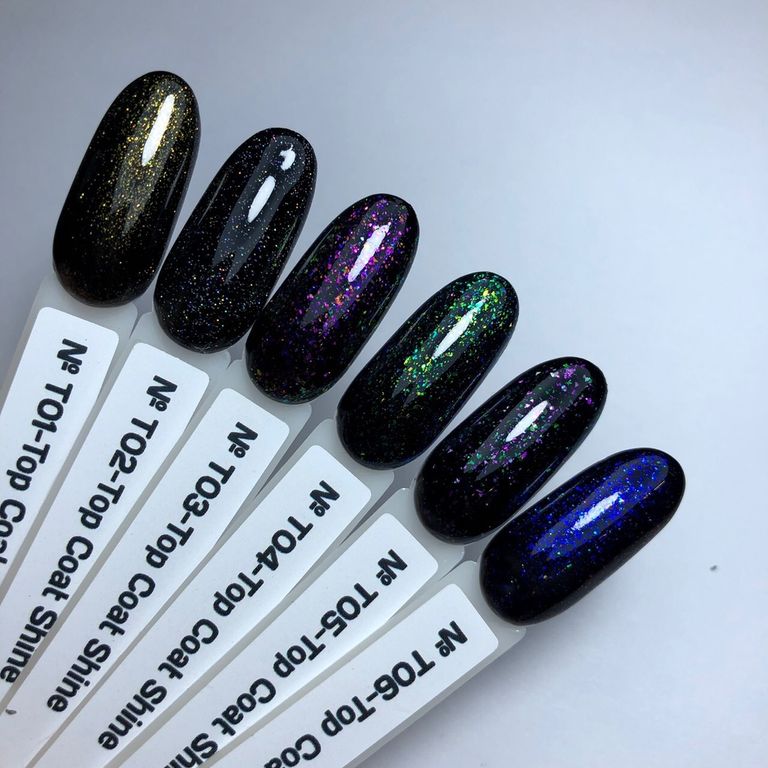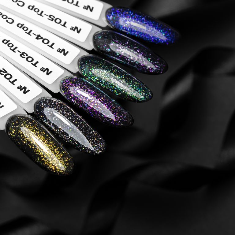 - Благодаря прозрачной консистенции топа и красивым блесткам можно обновить абсолютно любой цвет гель-лака.