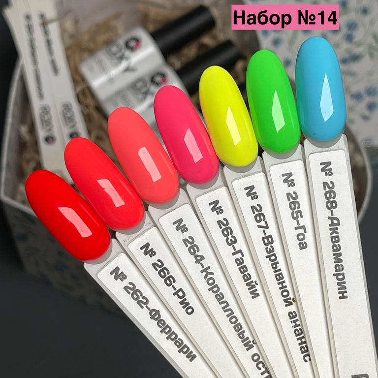 Неоновые гель-лаки ROXY (7 шт) + комплект наклеек
