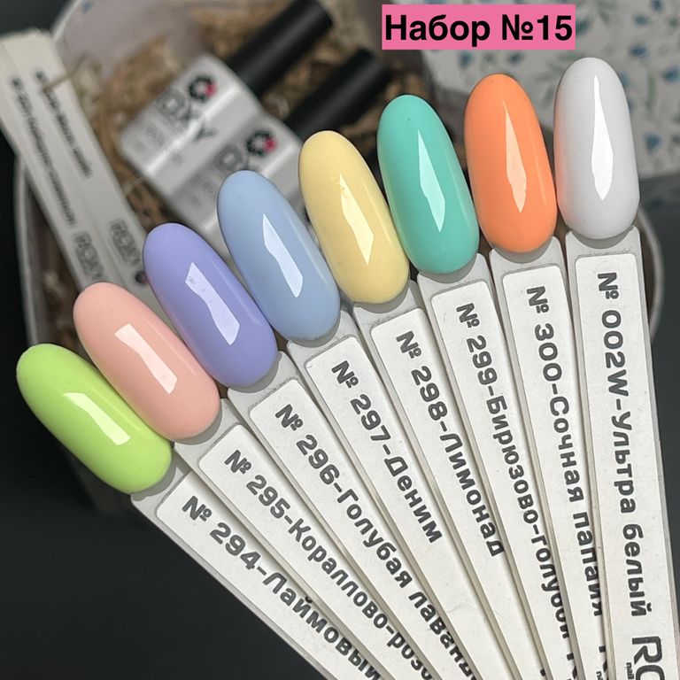 Пастельные гель-лаки ROXY (8 шт) + комплект наклеек