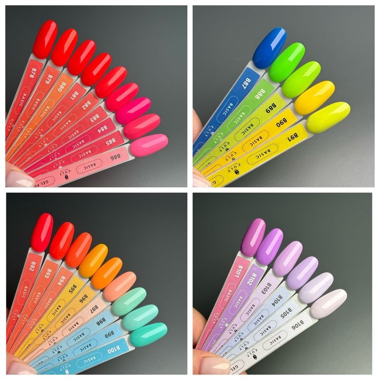 Набор гель-лаков CULT (205 шт) с фирменными наклейками на типсы.